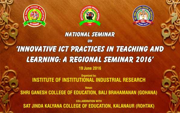 With this in mind, IIIR has organized “Innovative ICT Practices in Teaching and Learning: A Regional Seminar 2016” in Shri Ganesh College of Education Gohana on 19th June 2016.
